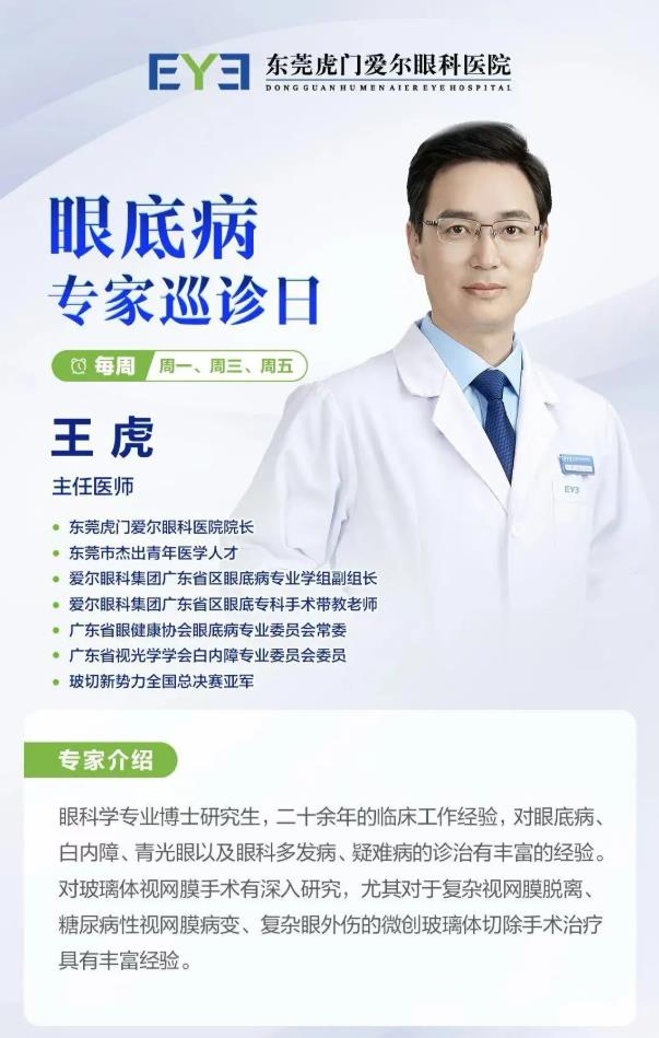 作为东莞地区眼底病诊疗的重要力量,东莞虎门爱尔眼科医院眼底病科在唐仕波教授、刘斐院长、王虎院长的带领下,已形成一支经验丰富、技术精湛的医疗团队。